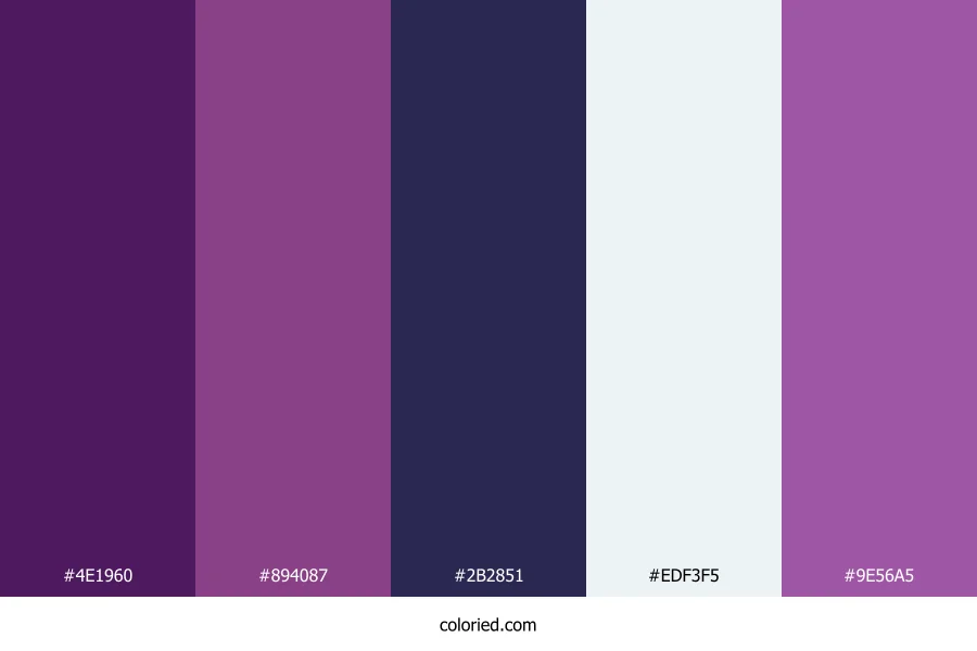 | #9E56A5 | 158, 86, 165 | 295, 31%, 49% | 4%, 48%, 0%, 35% | oklch(0.567 0.141 324) |