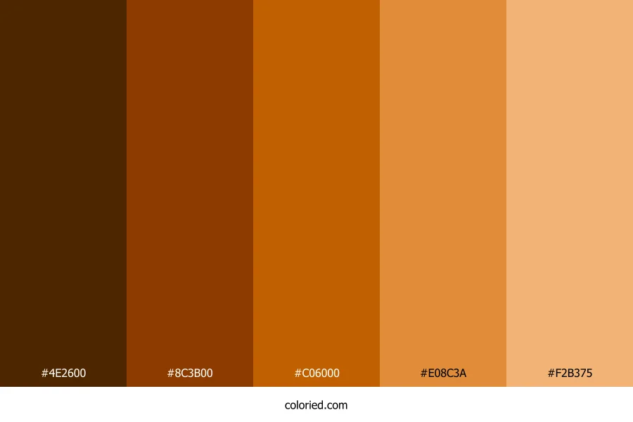 | #8C3B00 | 140, 59, 0 | 25, 100%, 27% | 0%, 58%, 100%, 45% | oklch(0.455 0.125 47) | |