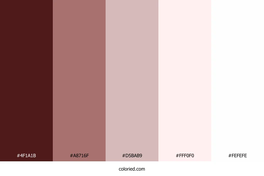 ![]() | #4F1A1B | 79, 26, 27 | 359, 50%, 21% | 0%, 67%, 66%, 69% | oklch(0.301 0.080 22) |