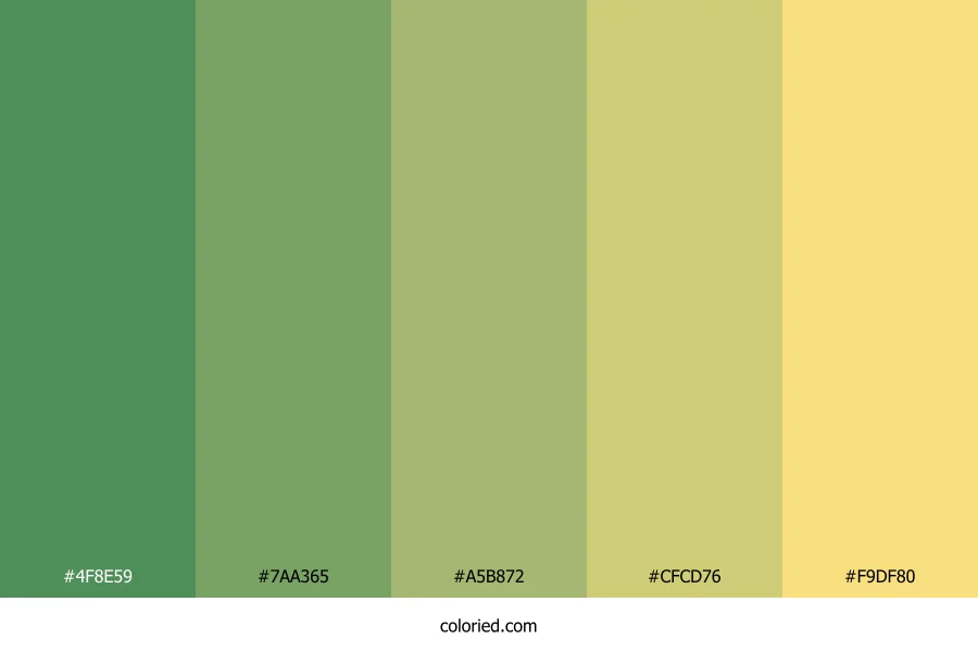 ![]() | #4F8E59 | 79, 142, 89 | 130, 29%, 43% | 44%, 0%, 37%, 44% | oklch(0.590 0.104 148) |