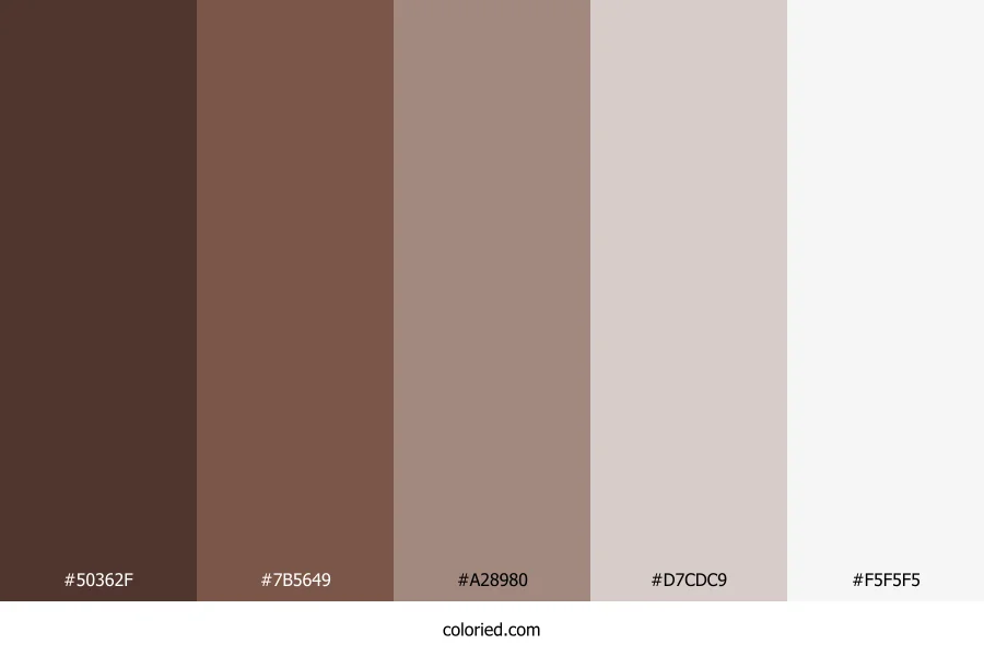 ![]() | #50362F | 80, 54, 47 | 13, 26%, 25% | 0%, 32%, 41%, 69% | oklch(0.361 0.040 36) |