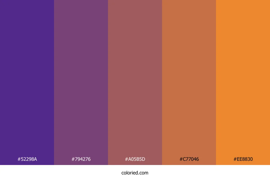 ![]() | #52298A | 82, 41, 138 | 265, 54%, 35% | 41%, 70%, 0%, 46% | oklch(0.391 0.153 298) |