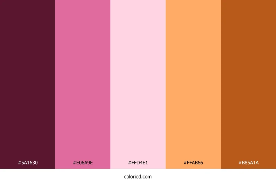 ![]() | #5A1630 | 90, 22, 48 | 337, 61%, 22% | 0%, 76%, 47%, 65% | oklch(0.323 0.101 1) |