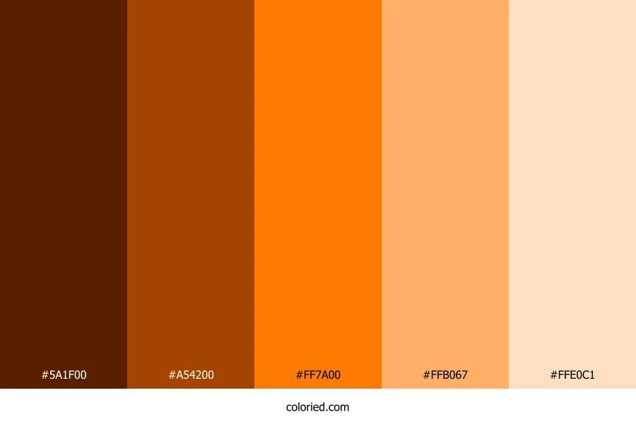 ![]() | #5A1F00 | 90, 31, 0 | 21, 100%, 18% | 0%, 66%, 100%, 65% | oklch(0.326 0.095 44) |