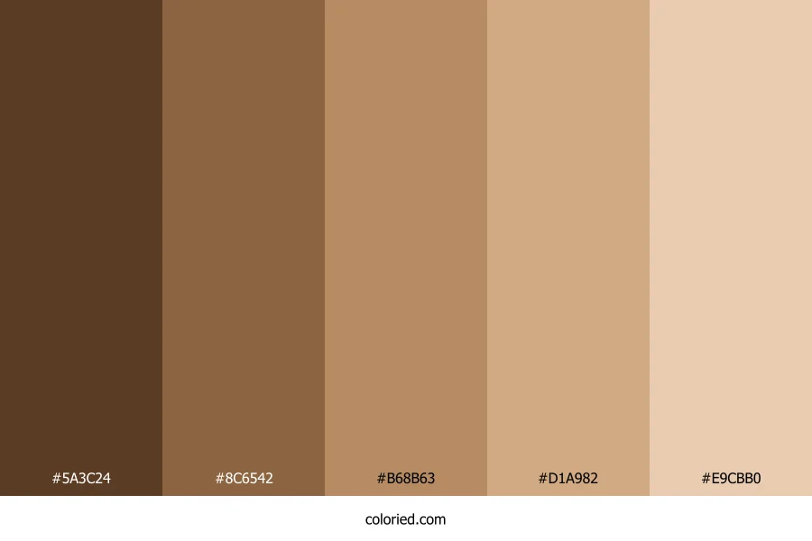 | #B68B63 | 182, 139, 99 | 29, 36%, 55% | 0%, 24%, 46%, 29% | oklch(0.668 0.076 64) | |