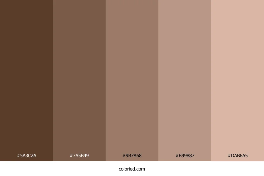 ![]() | #5A3C2A | 90, 60, 42 | 22, 36%, 26% | 0%, 33%, 53%, 65% | oklch(0.386 0.051 52) |
