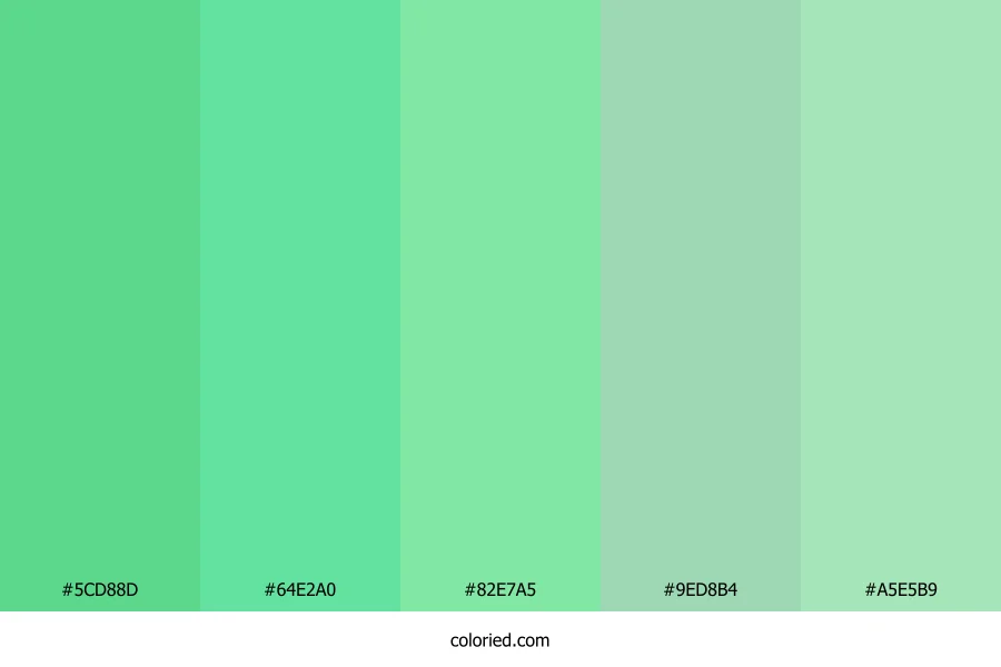 | #A5E5B9 | 165, 229, 185 | 139, 55%, 77% | 28%, 0%, 19%, 10% | oklch(0.867 0.089 154) |