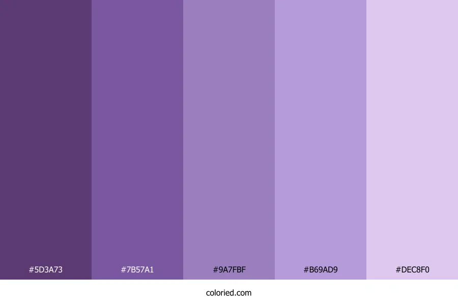![]() | #5D3A73 | 93, 58, 115 | 277, 33%, 34% | 19%, 50%, 0%, 55% | oklch(0.415 0.100 311) |