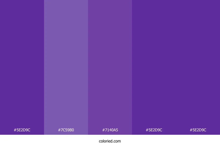 | #5E2D9C | 94, 45, 156 | 266, 55%, 39% | 40%, 71%, 0%, 39% | oklch(0.425 0.170 299) |