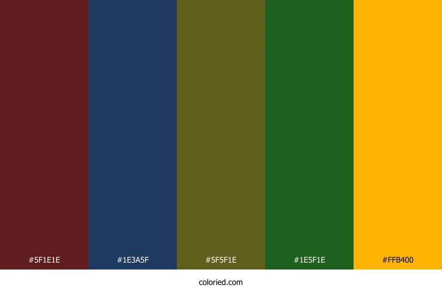 ![]() | #5F1E1E | 95, 30, 30 | 0, 52%, 25% | 0%, 68%, 68%, 63% | oklch(0.337 0.095 24) |
