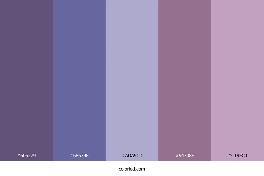 | #ADA9CD | 173, 169, 205 | 247, 26%, 73% | 16%, 18%, 0%, 20% | oklch(0.750 0.052 290) | |