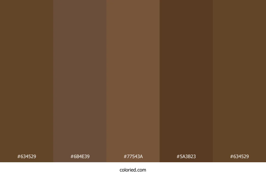 | #634529 | 99, 69, 41 | 29, 41%, 27% | 0%, 30%, 59%, 61% | oklch(0.417 0.059 63) |