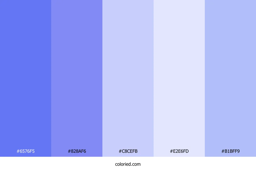 | #B1BFF9 | 177, 191, 249 | 228, 86%, 84% | 29%, 23%, 0%, 2% | oklch(0.814 0.084 274) |