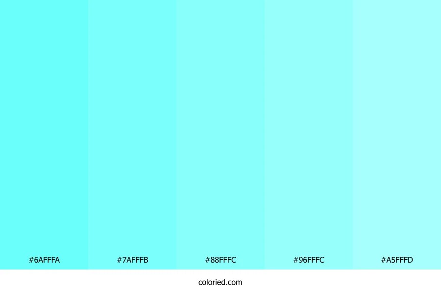 | #A5FFFD | 165, 255, 253 | 179, 100%, 82% | 35%, 0%, 1%, 0% | oklch(0.943 0.086 194) |