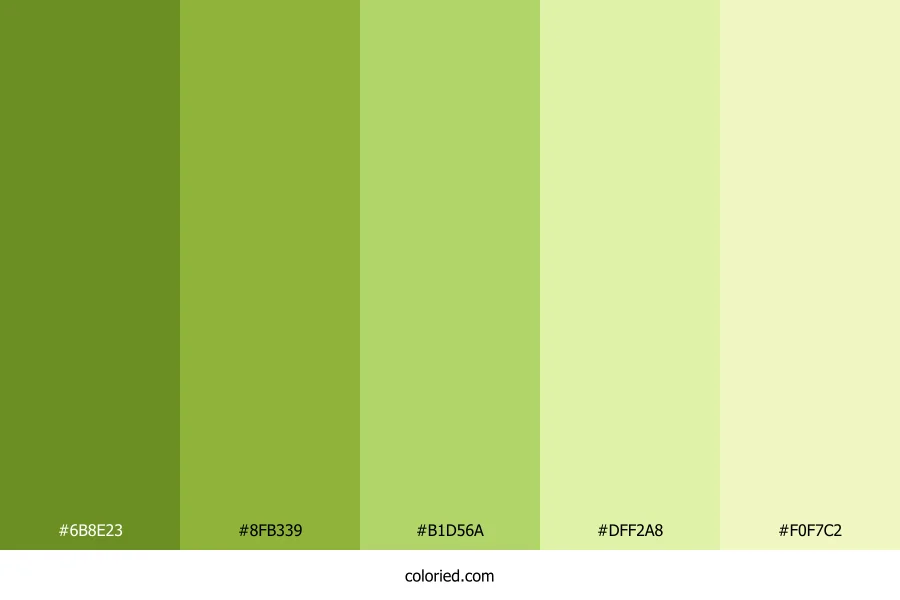 ![]() | #6B8E23 | 107, 142, 35 | 80, 60%, 35% | 25%, 0%, 75%, 44% | oklch(0.599 0.137 126) |