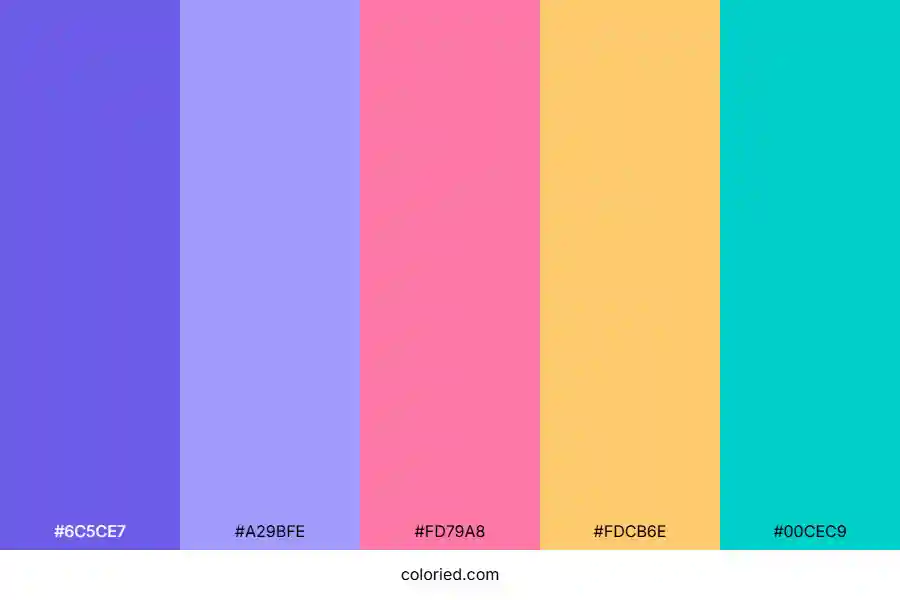 ![]() | #6C5CE7 | 108, 92, 231 | 247, 74%, 63% | 53%, 60%, 0%, 9% | oklch(0.568 0.202 283) |