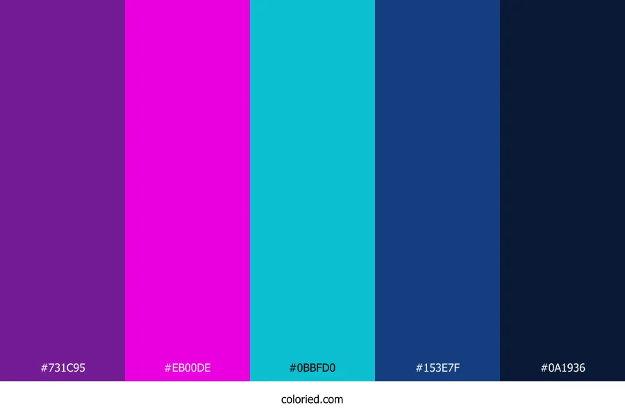 ![]() | #731C95 | 115, 28, 149 | 283, 68%, 35% | 23%, 81%, 0%, 42% | oklch(0.430 0.187 314) |