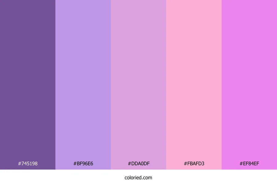 ![]() | #745198 | 116, 81, 152 | 270, 30%, 46% | 24%, 47%, 0%, 40% | oklch(0.503 0.115 305) |