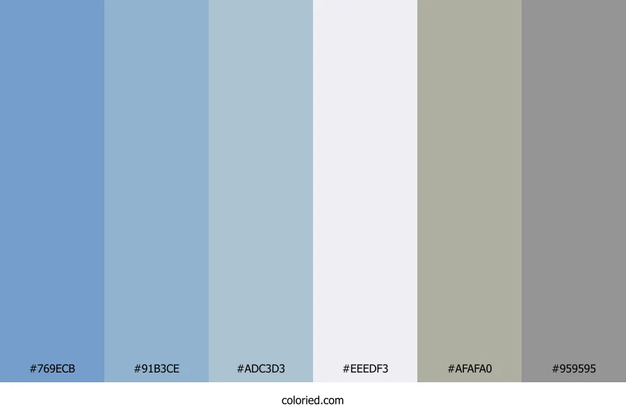 | #91B3CE | 145, 179, 206 | 207, 38%, 69% | 30%, 13%, 0%, 19% | oklch(0.751 0.054 242) | |