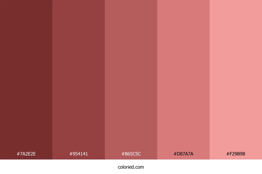 ![]() | #7A2E2E | 122, 46, 46 | 0, 45%, 33% | 0%, 62%, 62%, 52% | oklch(0.410 0.107 23) |