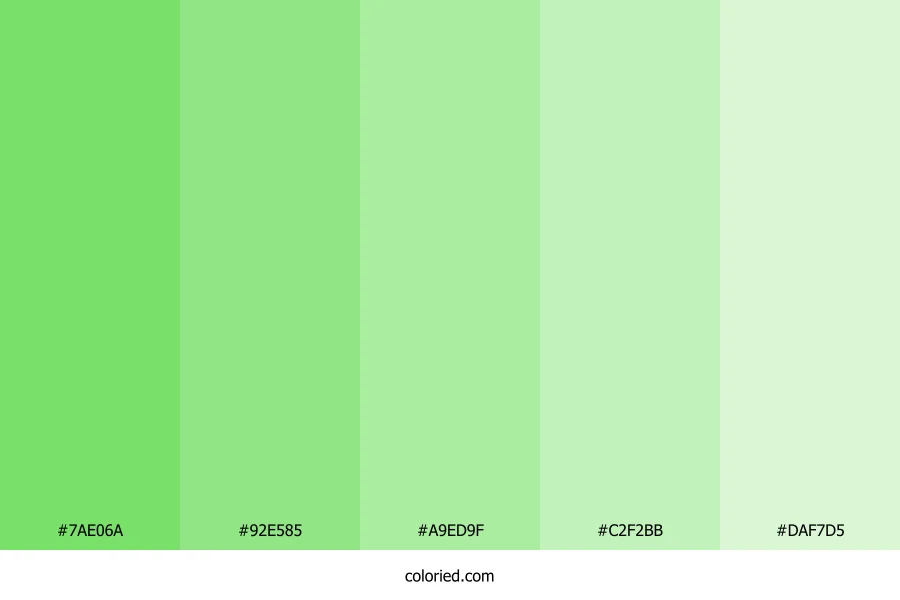 ![]() | #7AE06A | 122, 224, 106 | 112, 66%, 65% | 46%, 0%, 53%, 12% | oklch(0.819 0.183 141) |