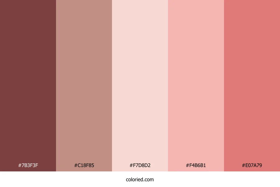| #E07A79 | 224, 122, 121 | 1, 62%, 68% | 0%, 46%, 46%, 12% | oklch(0.693 0.127 21) |