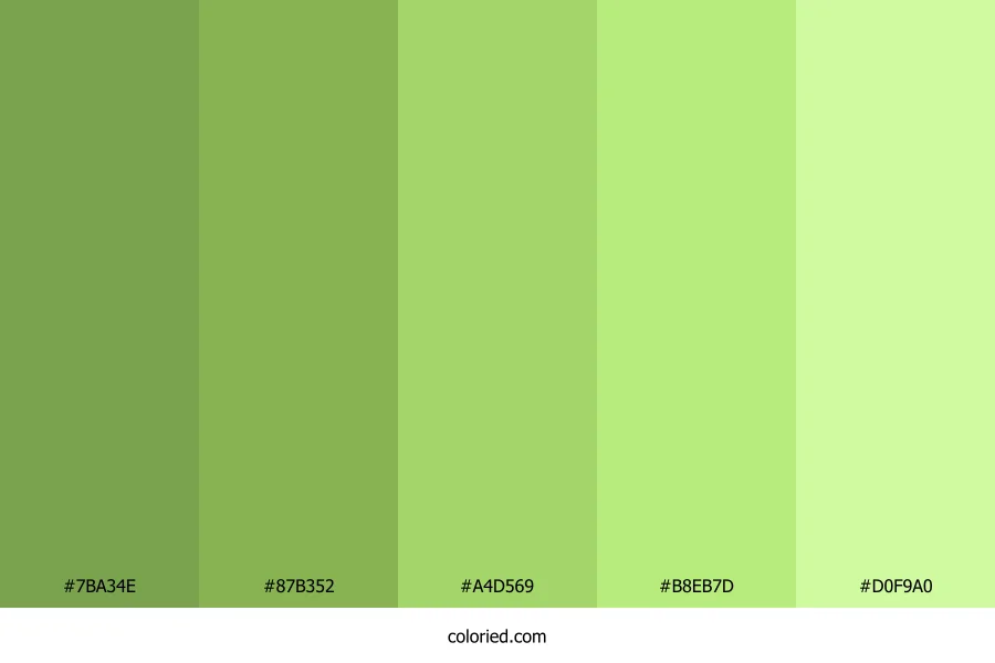 ![]() | #7BA34E | 123, 163, 78 | 88, 35%, 47% | 25%, 0%, 52%, 36% | oklch(0.667 0.122 130) |