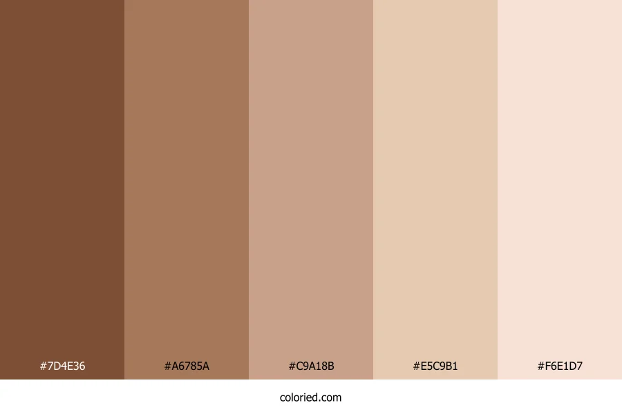 ![]() | #7D4E36 | 125, 78, 54 | 20, 40%, 35% | 0%, 38%, 57%, 51% | oklch(0.472 0.073 47) |