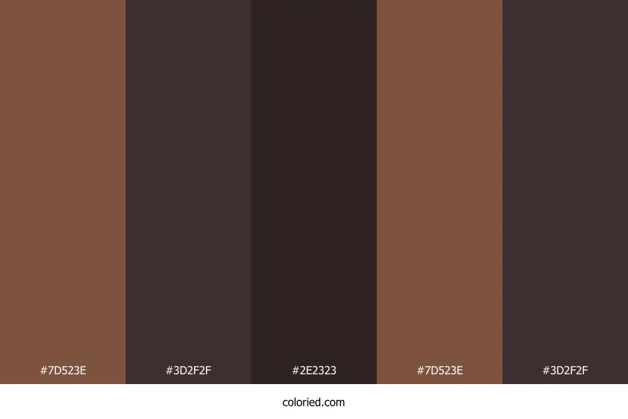 | #7D523E | 125, 82, 62 | 19, 34%, 37% | 0%, 34%, 50%, 51% | oklch(0.481 0.066 46) | |