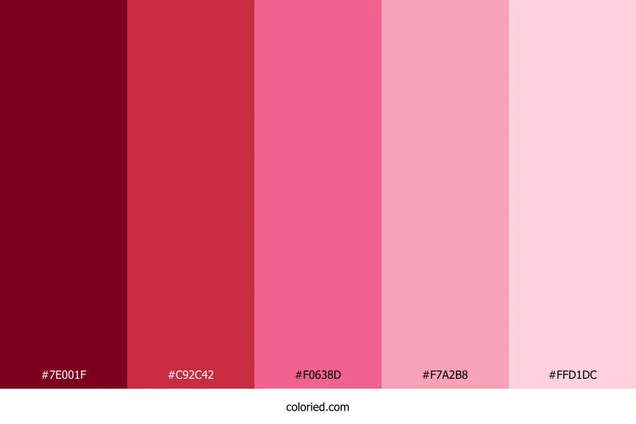 ![]() | #7E001F | 126, 0, 31 | 345, 100%, 25% | 0%, 100%, 75%, 51% | oklch(0.376 0.151 19) |