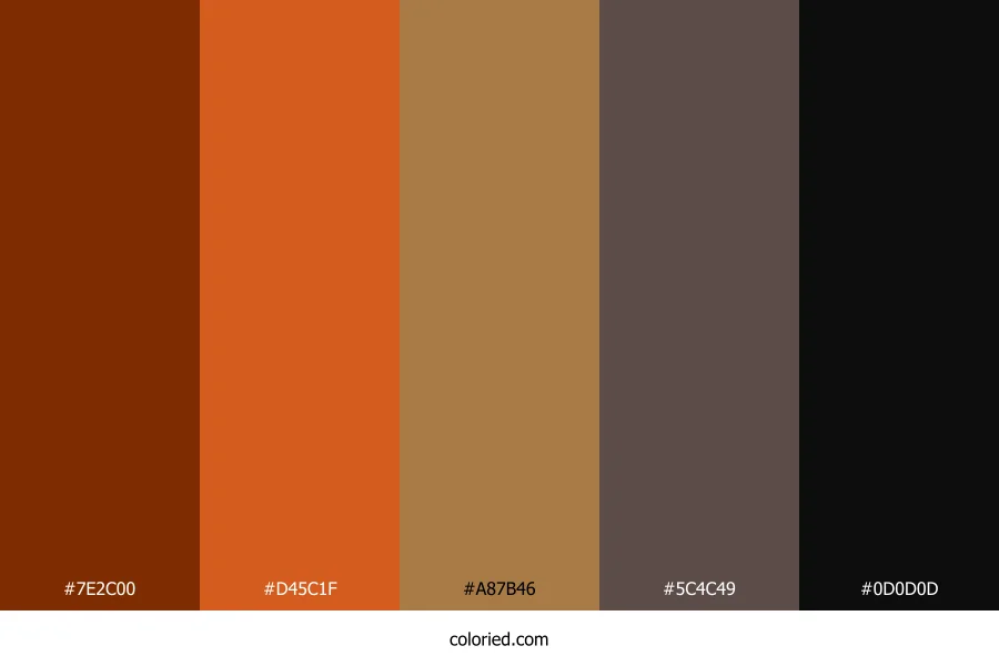 ![]() | #7E2C00 | 126, 44, 0 | 21, 100%, 25% | 0%, 65%, 100%, 51% | oklch(0.409 0.123 42) |