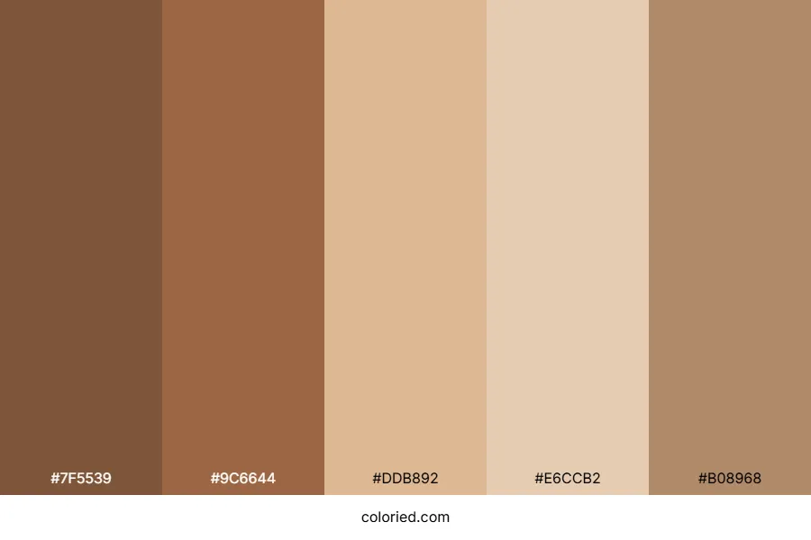 Neutral fall color palette includes 5 carefully selected colors: walnut (#7f5539), mocha (#9c6644), sand (#ddb892), almond (#e6ccb2), and warm taupe (#b08968).