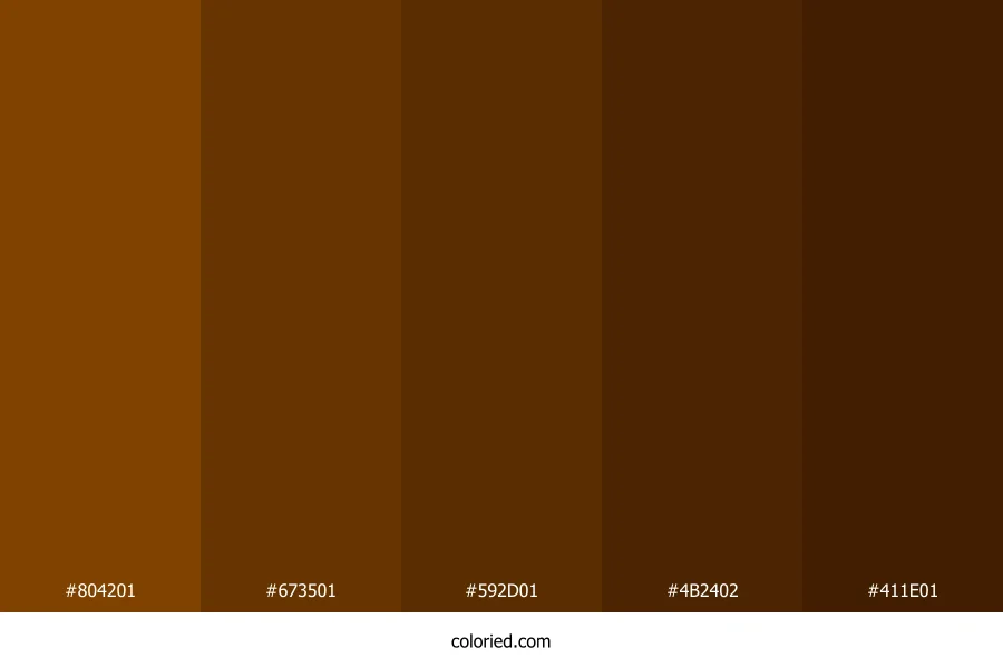 ![]() | #804201 | 128, 66, 1 | 31, 98%, 25% | 0%, 48%, 99%, 50% | oklch(0.448 0.108 57) |