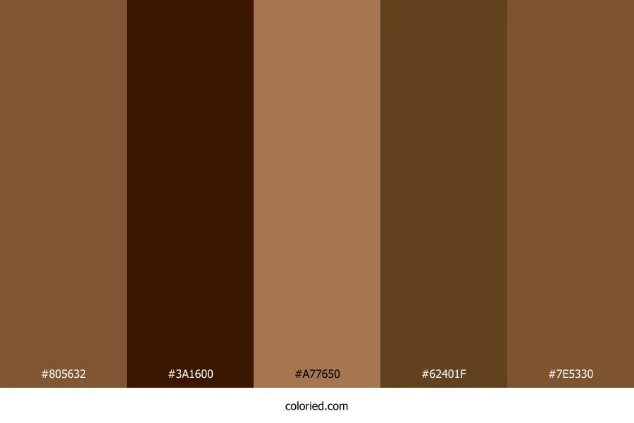 | #7E5330 | 126, 83, 48 | 27, 45%, 34% | 0%, 34%, 62%, 51% | oklch(0.482 0.076 59) |