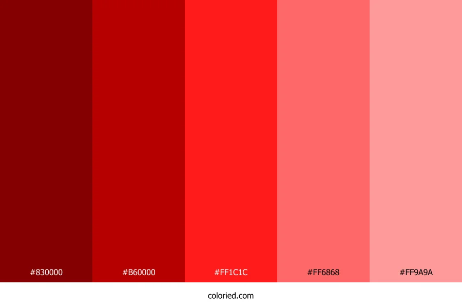 | #FF1C1C | 255, 28, 28 | 0, 100%, 55% | 0%, 89%, 89%, 0% | oklch(0.635 0.250 28) | |