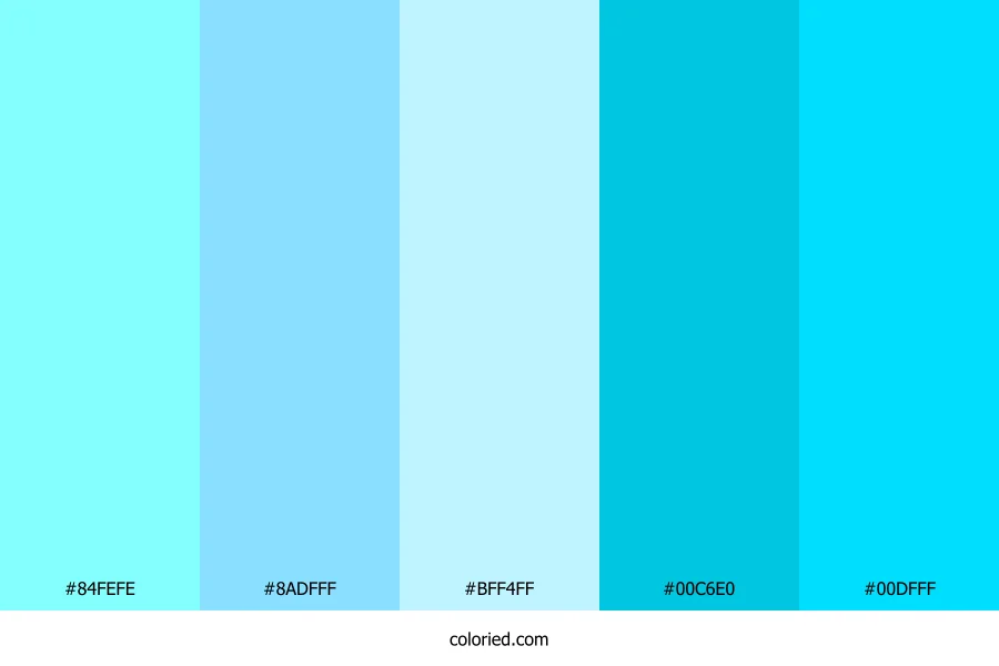 ![]() | #84FEFE | 132, 254, 254 | 180, 98%, 76% | 48%, 0%, 0%, 0% | oklch(0.927 0.110 195) |