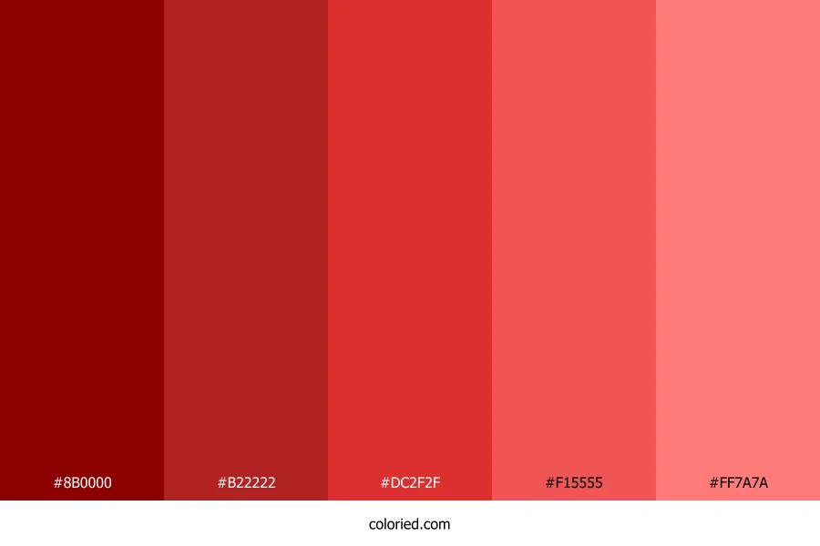 | #DC2F2F | 220, 47, 47 | 0, 71%, 52% | 0%, 79%, 79%, 14% | oklch(0.584 0.209 27) | |