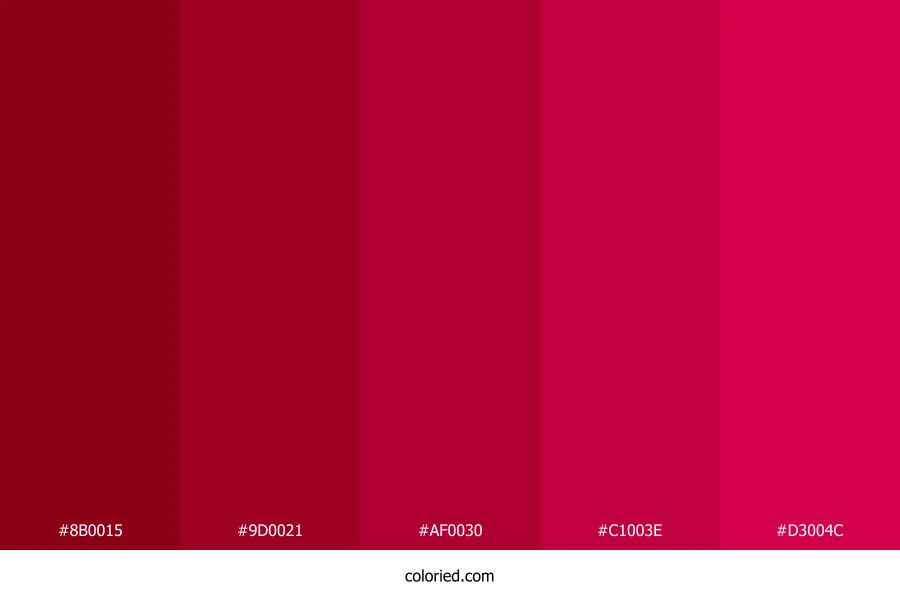 | #D3004C | 211, 0, 76 | 338, 100%, 41% | 0%, 100%, 64%, 17% | oklch(0.552 0.221 13) |