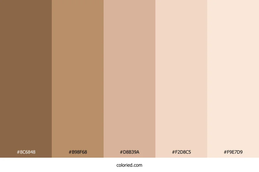 | #D8B39A | 216, 179, 154 | 24, 44%, 73% | 0%, 17%, 29%, 15% | oklch(0.793 0.055 56) | |