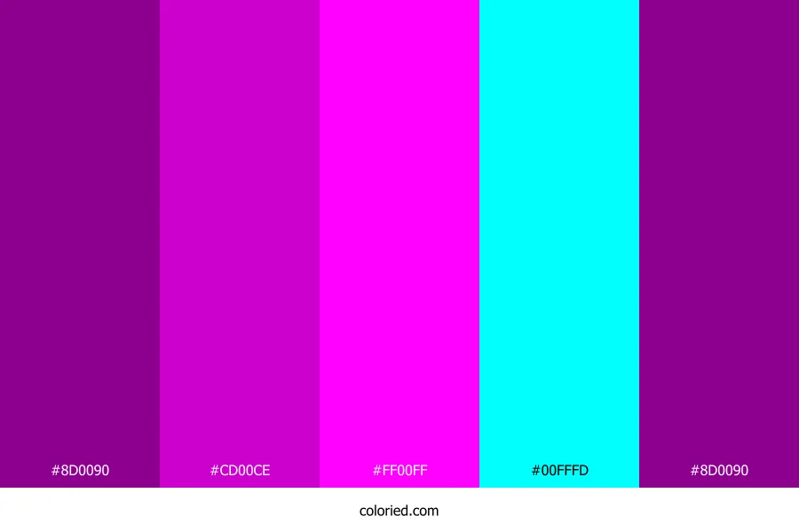 | #8D0090 | 141, 0, 144 | 299, 100%, 28% | 2%, 100%, 0%, 44% | oklch(0.453 0.210 327) |