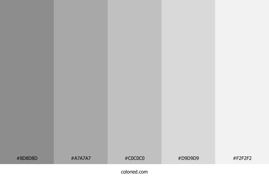 ![]() | #8D8D8D | 141, 141, 141 | 0, 0%, 55% | 0%, 0%, 0%, 45% | oklch(0.643 0.000 263) |