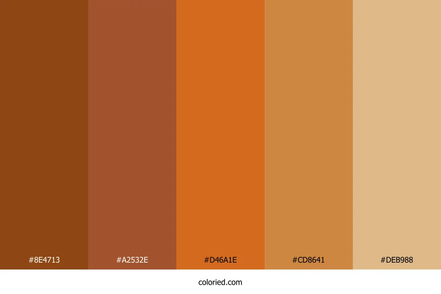 ![]() | #8E4713 | 142, 71, 19 | 25, 76%, 32% | 0%, 50%, 87%, 44% | oklch(0.479 0.114 51) |