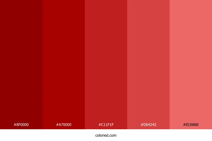 ![]() | #8F0000 | 143, 0, 0 | 0, 100%, 28% | 0%, 100%, 100%, 44% | oklch(0.408 0.167 29) |