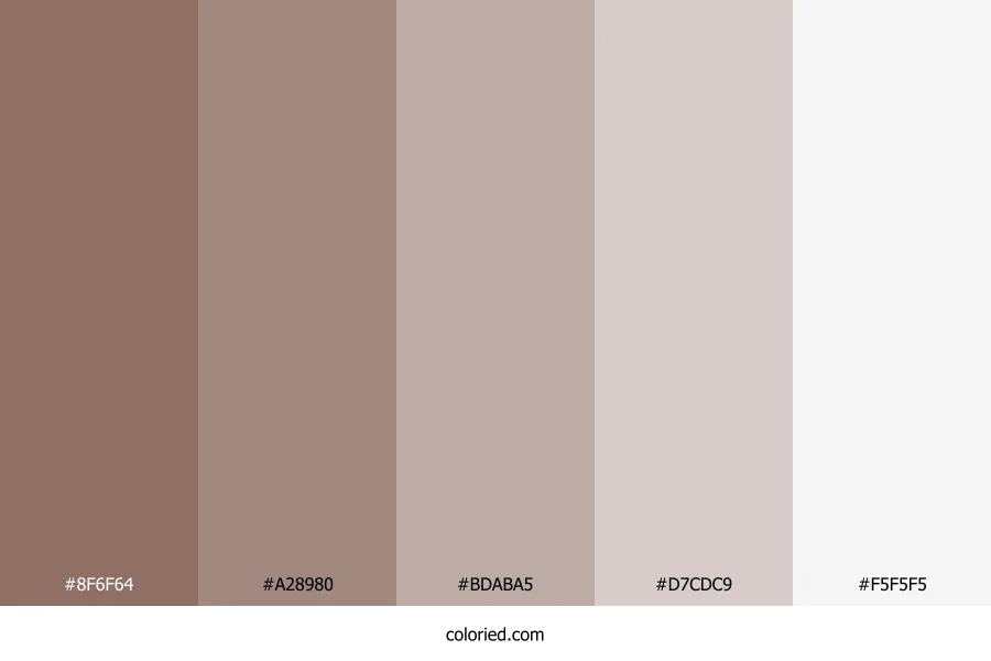 ![]() | #8F6F64 | 143, 111, 100 | 15, 18%, 48% | 0%, 22%, 30%, 44% | oklch(0.570 0.044 40) |