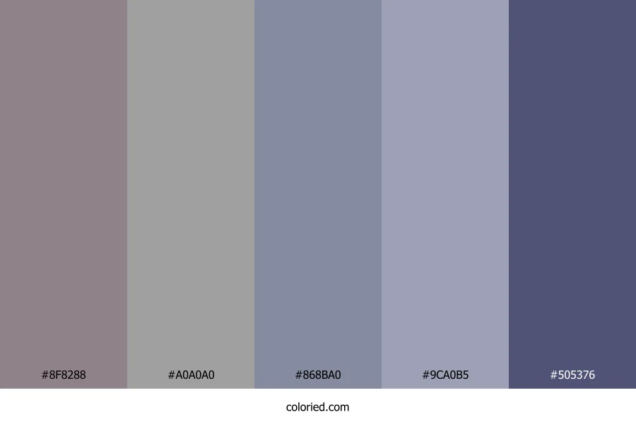 ![]() | #8F8288 | 143, 130, 136 | 332, 5%, 54% | 0%, 9%, 5%, 44% | oklch(0.620 0.018 348) |
