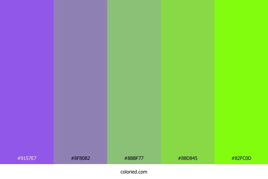 ![]() | #9157E7 | 145, 87, 231 | 264, 75%, 62% | 37%, 62%, 0%, 9% | oklch(0.594 0.209 298) |