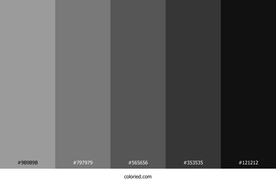 ![]() | #9B9B9B | 155, 155, 155 | 0, 0%, 61% | 0%, 0%, 0%, 39% | oklch(0.689 0.000 263) |