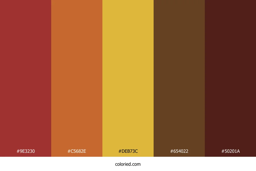 ![]() | #9E3230 | 158, 50, 48 | 1, 53%, 40% | 0%, 68%, 70%, 38% | oklch(0.478 0.144 25) |