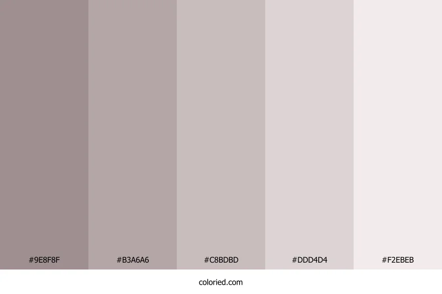 ![]() | #9E8F8F | 158, 143, 143 | 0, 7%, 59% | 0%, 9%, 9%, 38% | oklch(0.663 0.018 17) |