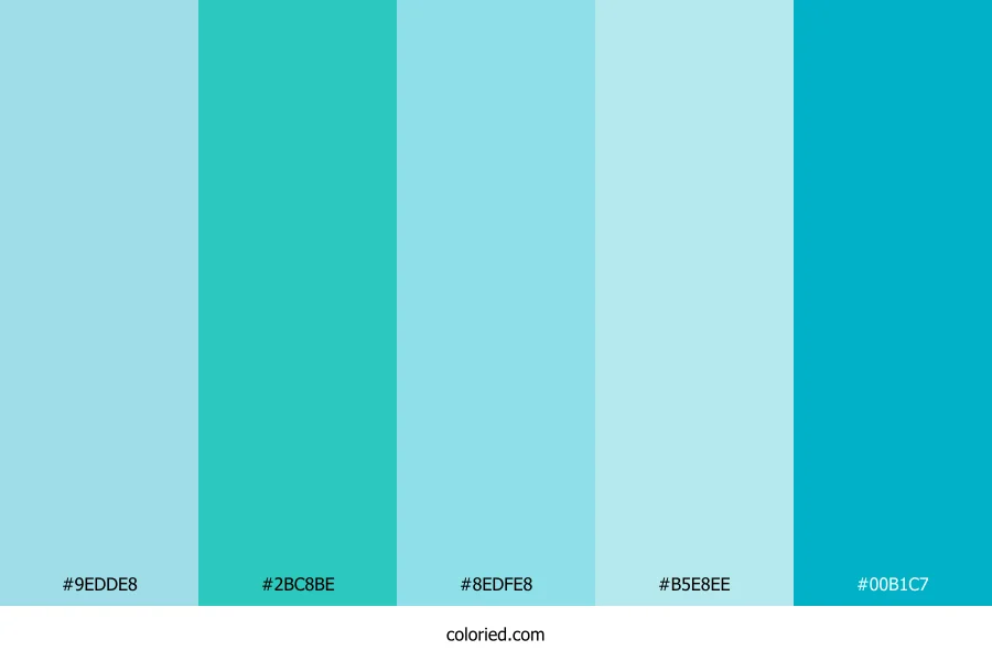 ![]() | #9EDDE8 | 158, 221, 232 | 189, 62%, 76% | 32%, 5%, 0%, 9% | oklch(0.859 0.065 210) |